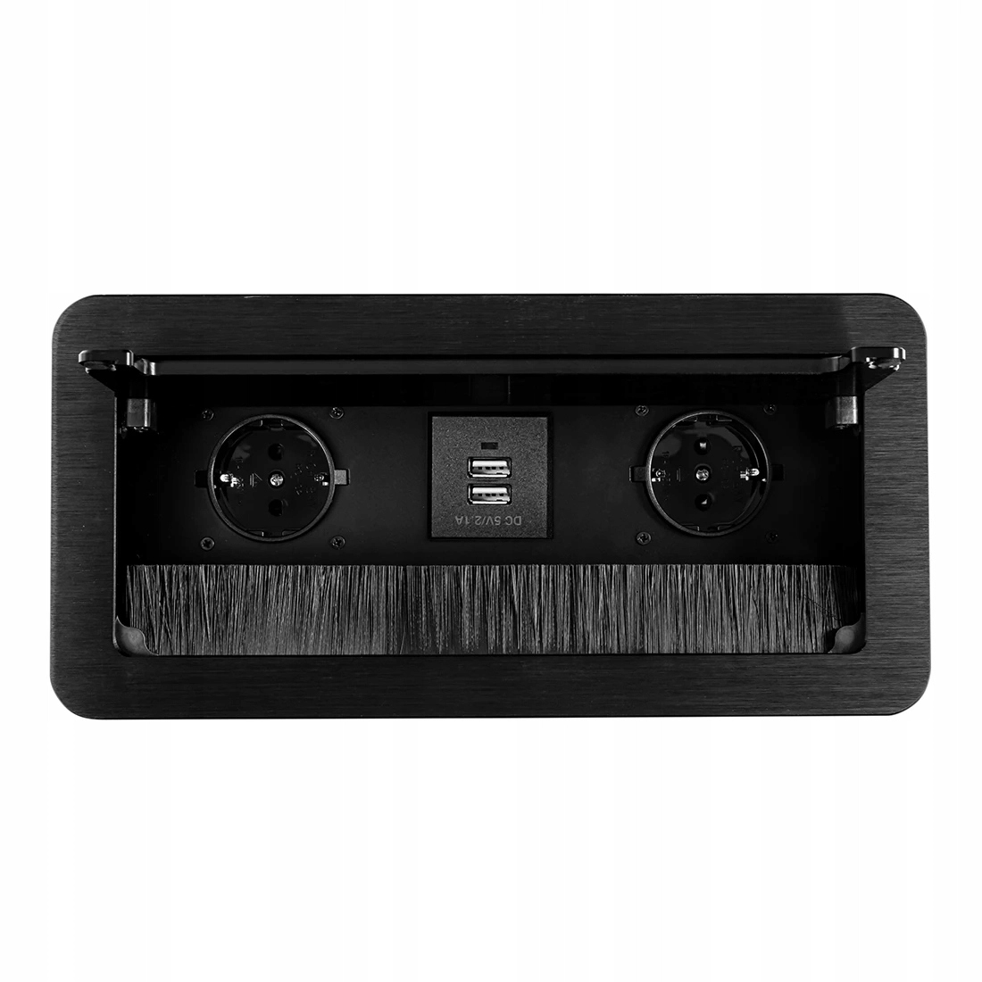 Czarny mediaport wpuszczany w blat - 2x Schuko + 2x USB