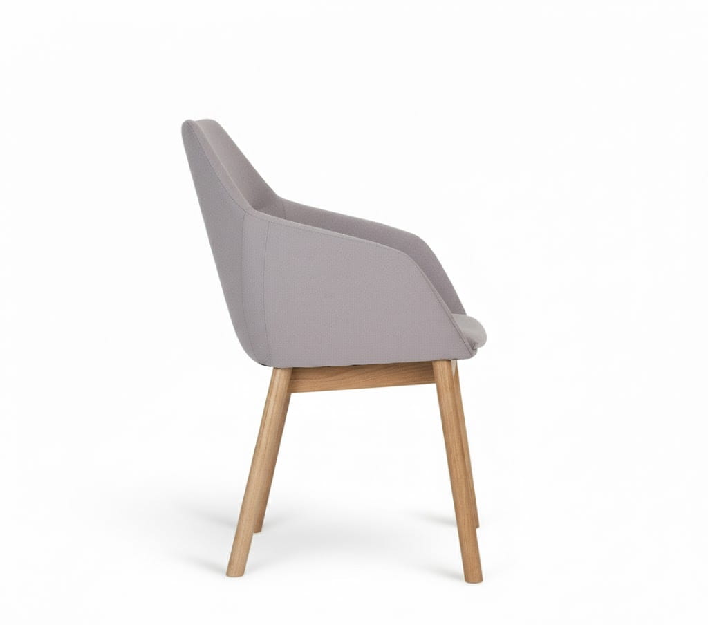 • Naturalne drewno wnosi ciepło i przytulność, dzięki czemu fotel idealnie sprawdzi się w domowej jadalni lub w przytulnym lobby.