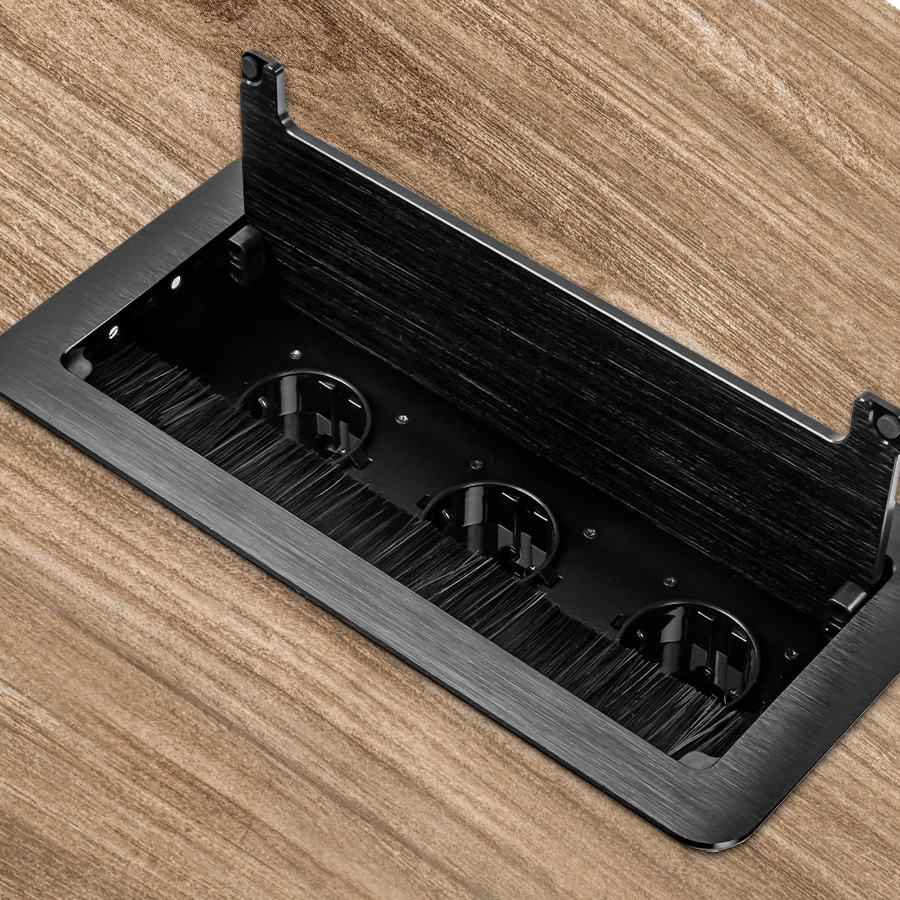 Szukasz rozwiązania, które łączy estetykę z najwyższą funkcjonalnością? Nasz wpuszczany mediaport to najczęściej wybierany produkt wśród klientów szukających porządku na stanowisku pracy. Dzięki minimalistycznej konstrukcji gniazdo pozostaje dyskretnie ukryte, gdy nie jest używane, a dostęp do zasilania uzyskasz jednym, płynnym ruchem ręki.