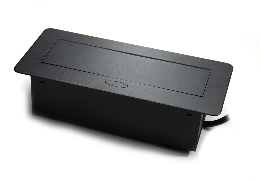 Elegancki design: Czarne wykończenie sprawia, że mediaport wygląda nowocześnie i wtapia się w większość blatów, zachowując minimalistyczny styl.