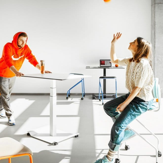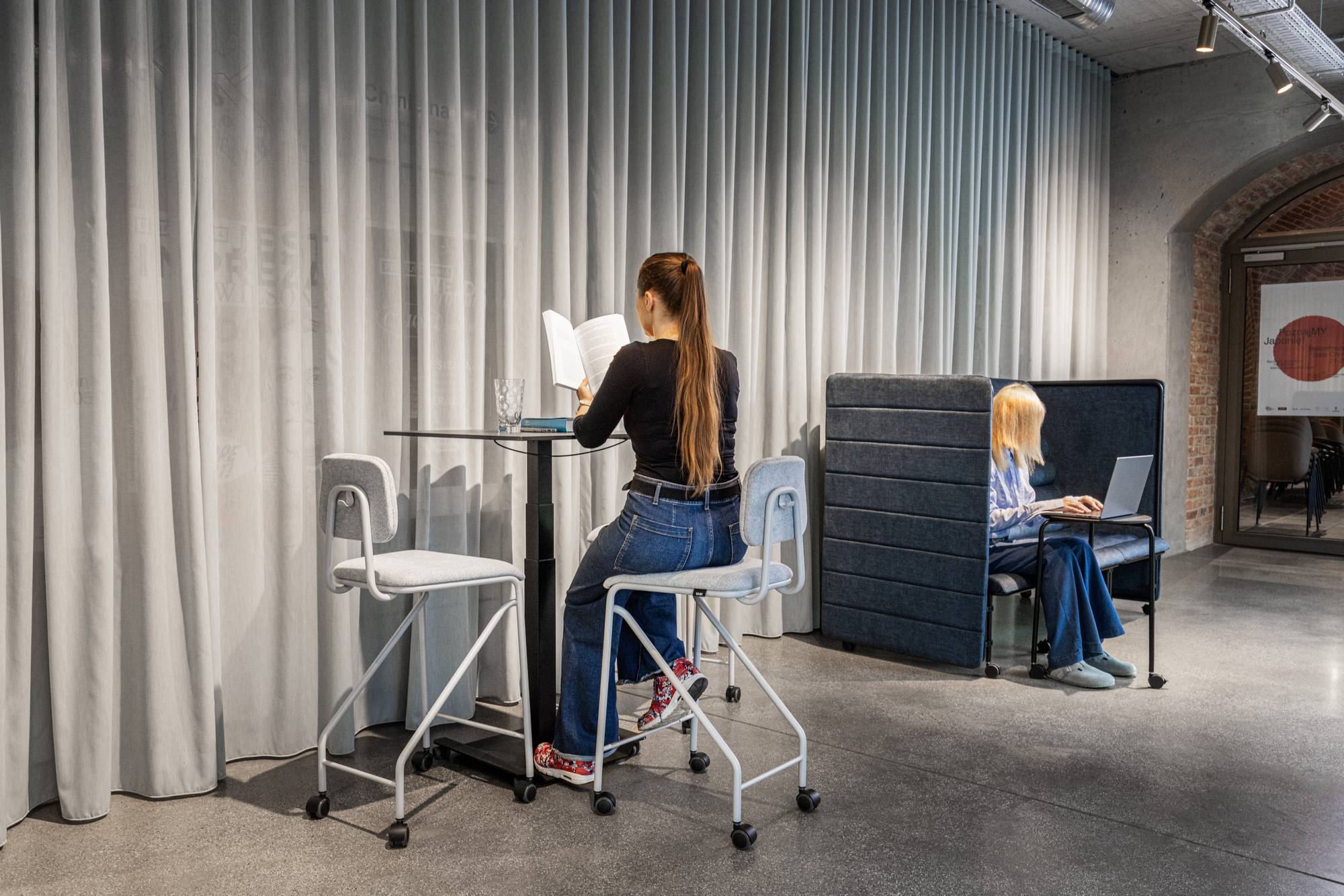 Strefy Hot-Desk: Jeden mebel, który obsłuży każdego pracownika, niezależnie od jego preferencji co do wysokości blatu.